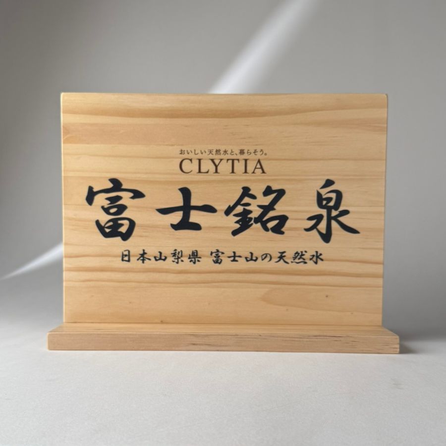 日商沃德天然水公司委託製作松木桌上招牌。