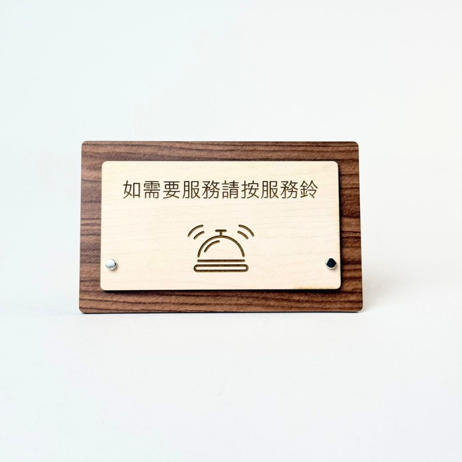 桌上型小立牌木質質感,服飾店、鞋店 如需服務請按服務鈴。